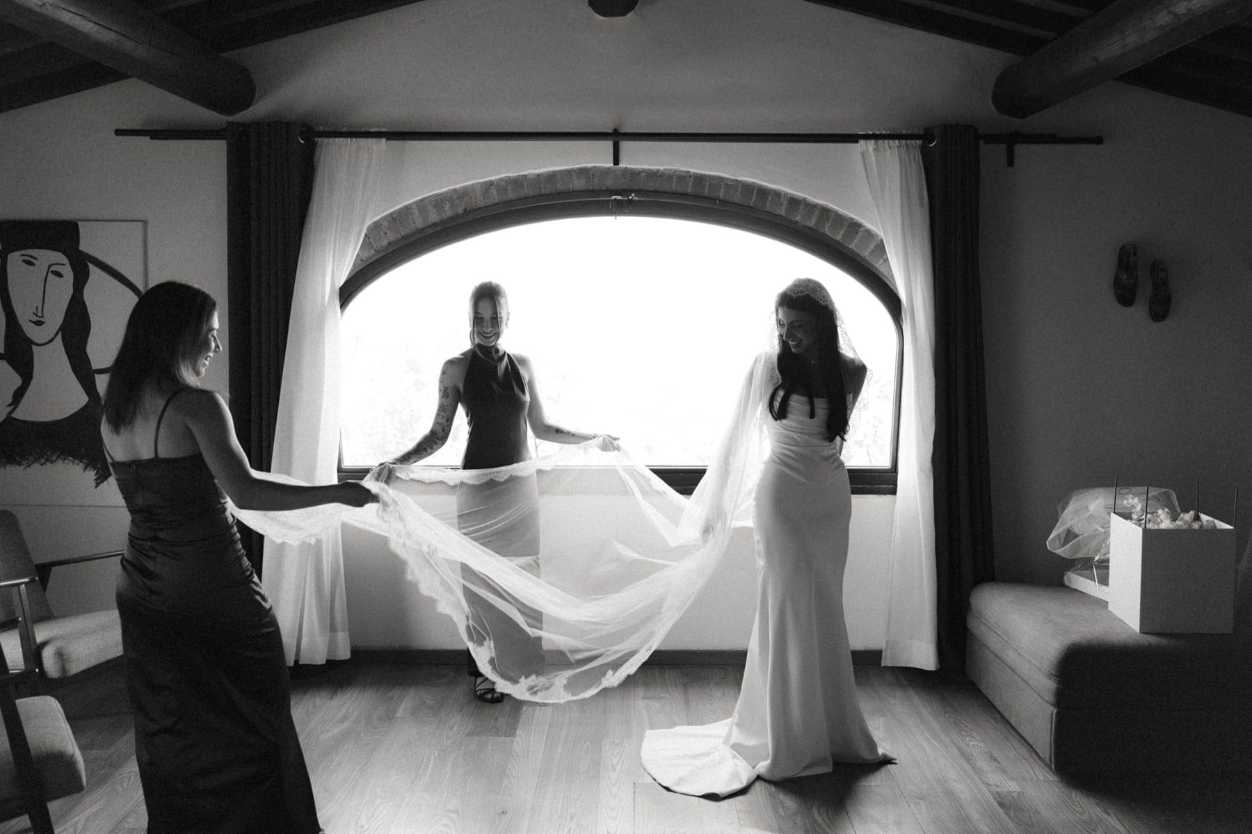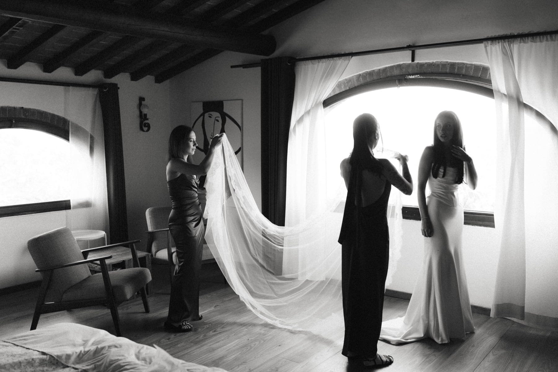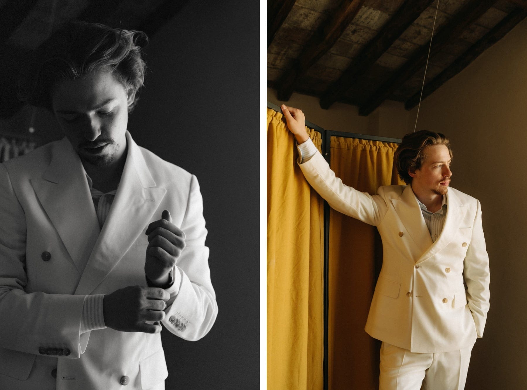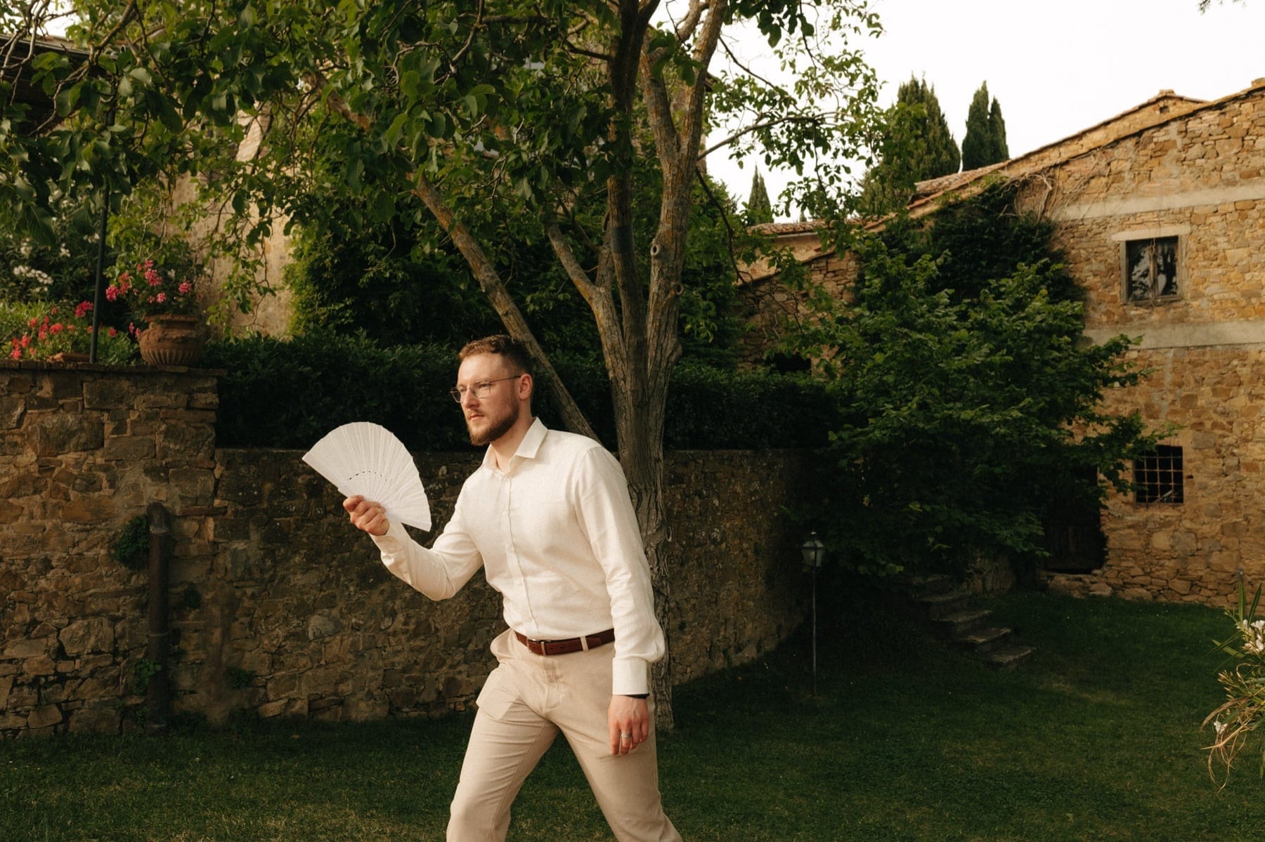 Kolejnego dnia para młoda rozpoczęła przygotowania w Quercia al Poggio – miejscu, które idealnie oddaje klimat ślubu w Toskanii. Cisza, natura i przestrzeń sprawiają, że wszystko dzieje się spokojniej i bardziej świadomie. First look odbył się na terenie posiadłości i był jednym z najbardziej wzruszających momentów całego dnia. Para nie tylko zobaczyła się po raz pierwszy, ale również odczytała swoje listy. Takie chwile to esencja tego, czym jest ślub we Włoszech – prawdziwe emocje, bez pośpiechu i presji.
