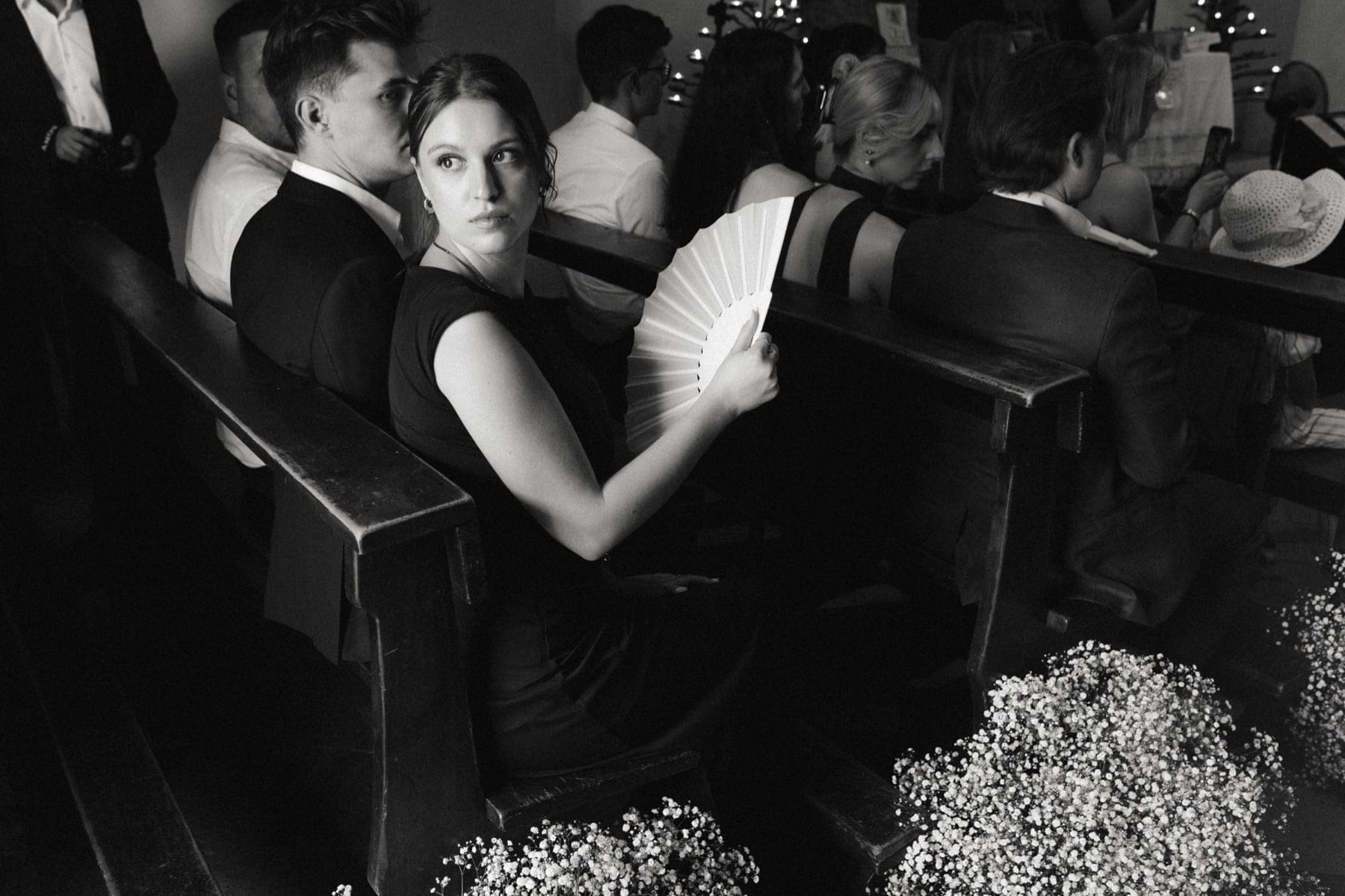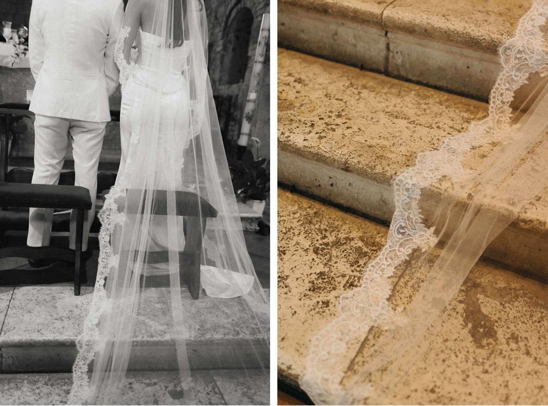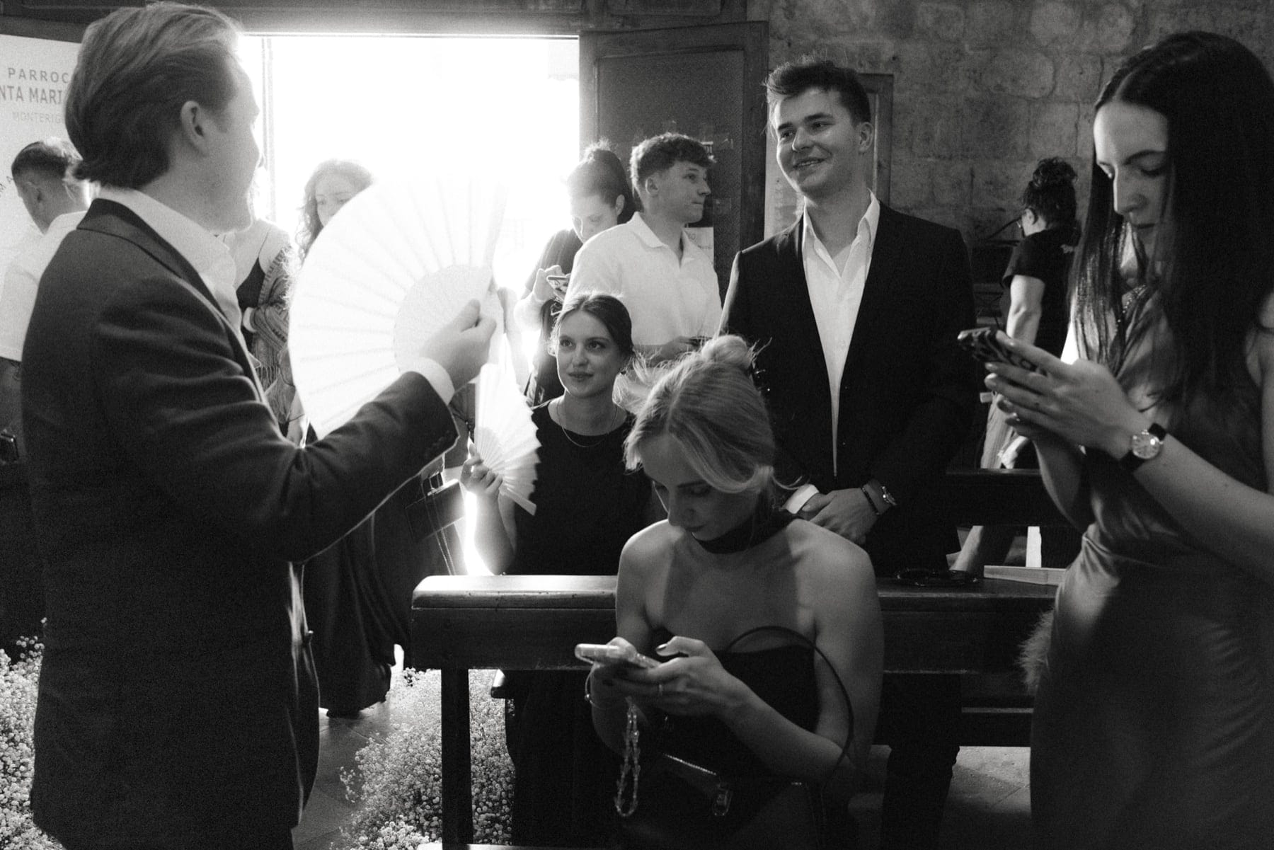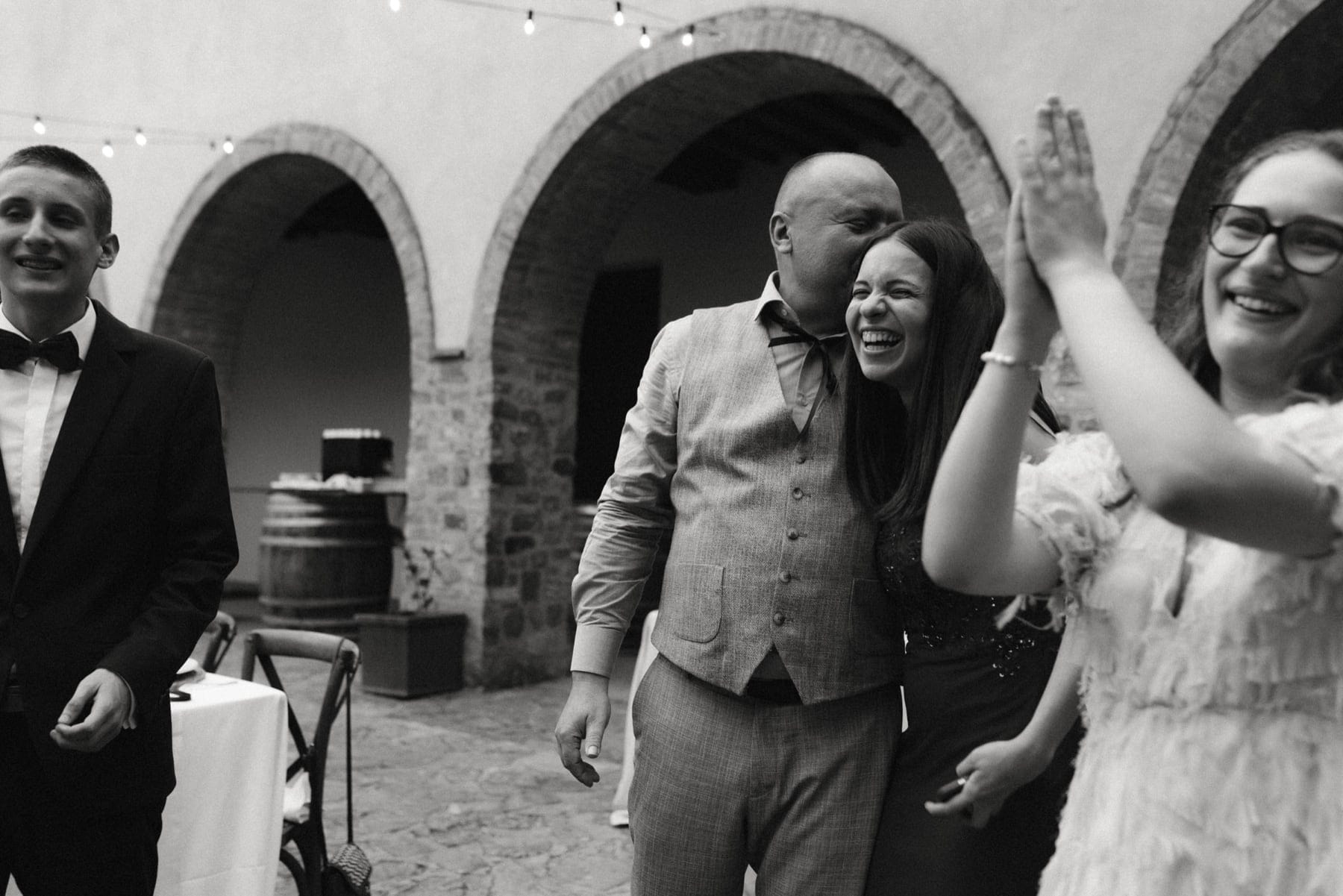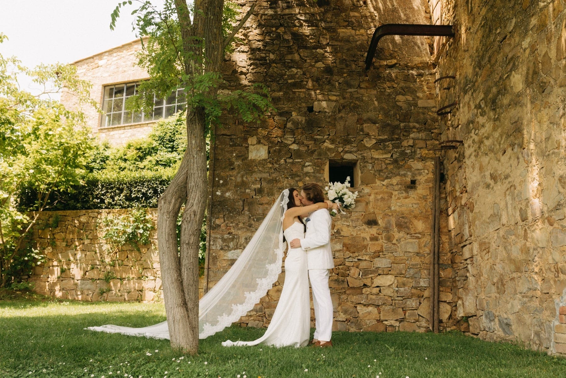 Ceremonia ślubna odbyła się w pobliskim, kameralnym kościółku, co jest bardzo częstym wyborem przy organizacji ślubu we Włoszech. To połączenie tradycji z późniejszym, swobodnym weselem w Toskanii daje idealny balans. Wnętrze kościoła, kameralność, naturalne światło i bliskość najważniejszych osób stworzyły niezwykle intymną atmosferę. Ślub we Włoszech często wyróżnia się właśnie tym – prostotą, autentycznością i ogromnym ładunkiem emocjonalnym.