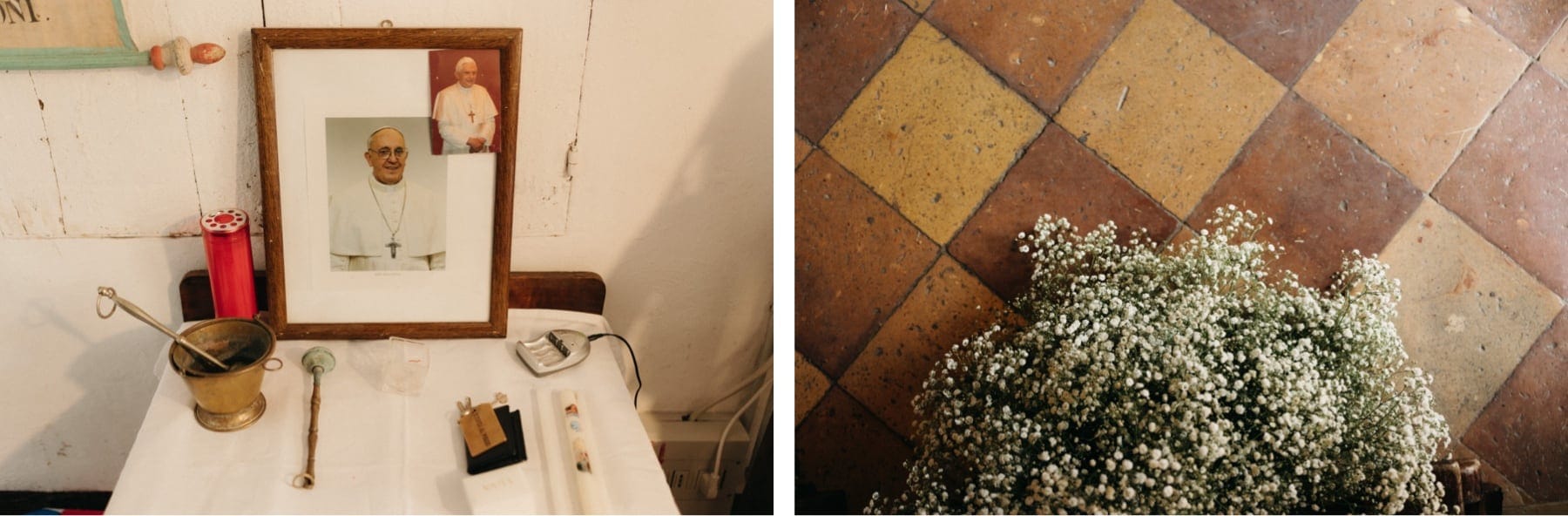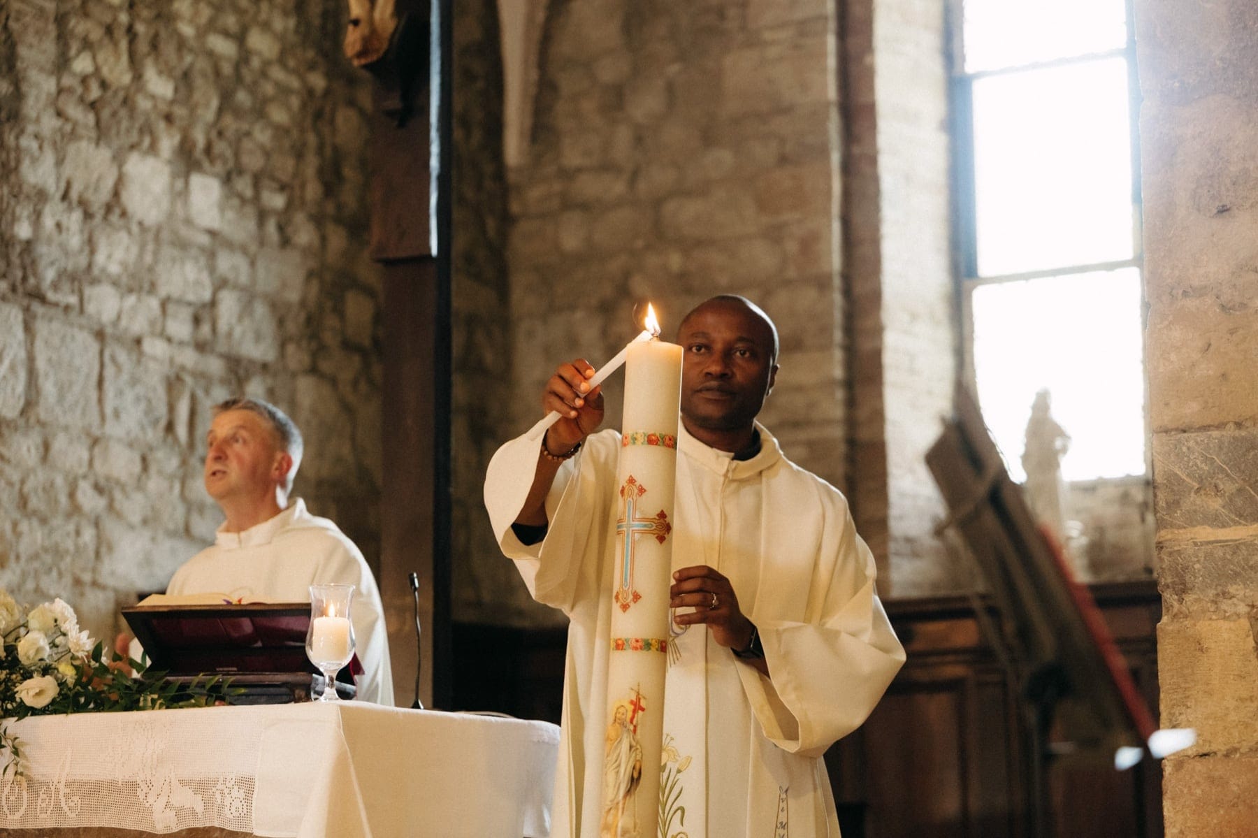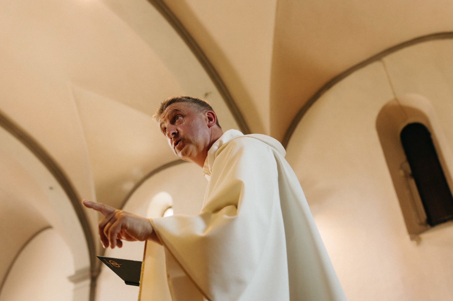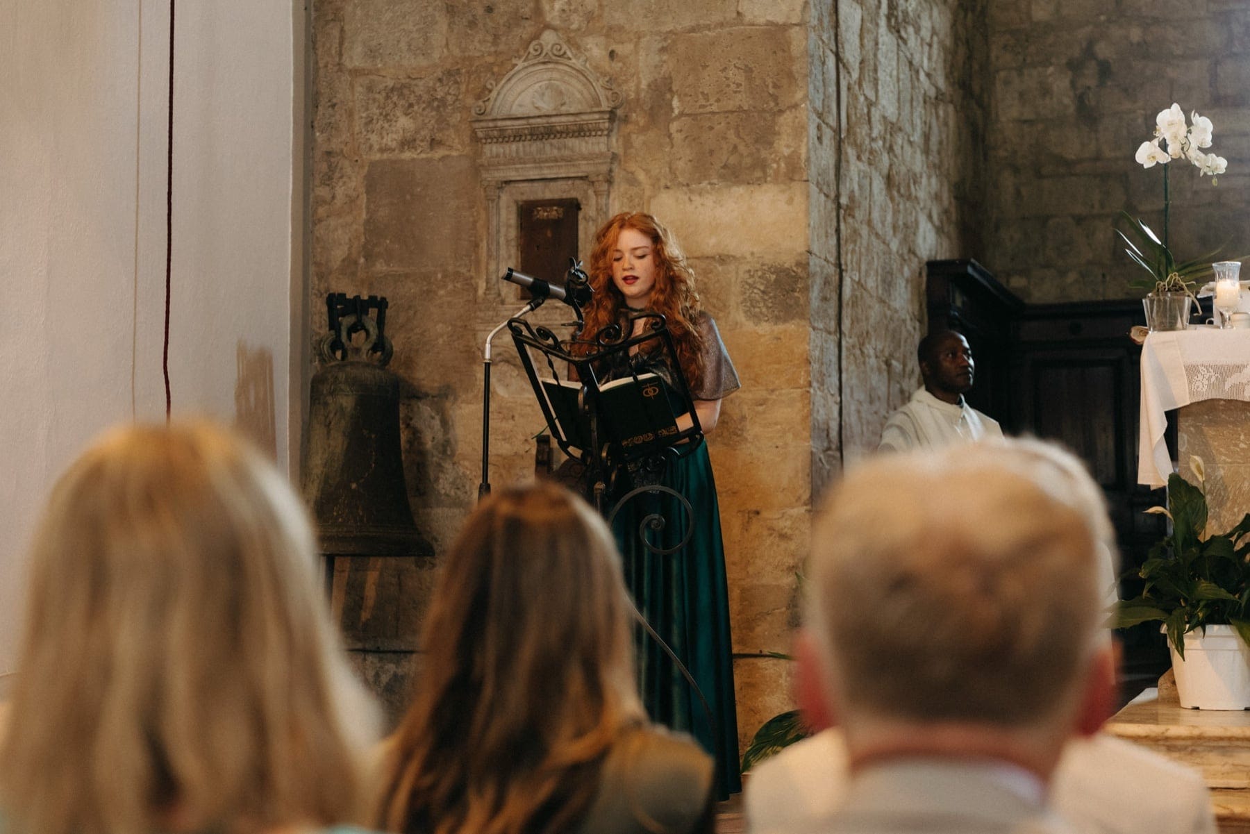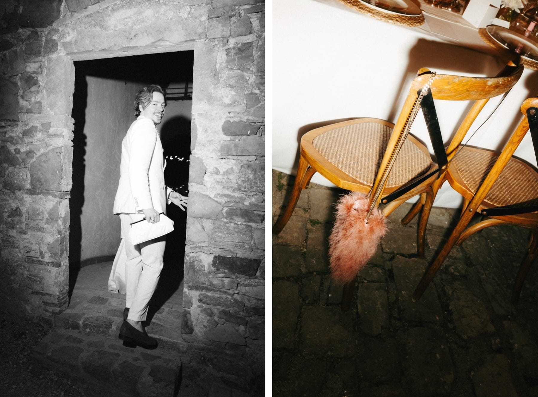 Ceremonia ślubna odbyła się w pobliskim, kameralnym kościółku, co jest bardzo częstym wyborem przy organizacji ślubu we Włoszech. To połączenie tradycji z późniejszym, swobodnym weselem w Toskanii daje idealny balans. Wnętrze kościoła, kameralność, naturalne światło i bliskość najważniejszych osób stworzyły niezwykle intymną atmosferę. Ślub we Włoszech często wyróżnia się właśnie tym – prostotą, autentycznością i ogromnym ładunkiem emocjonalnym.