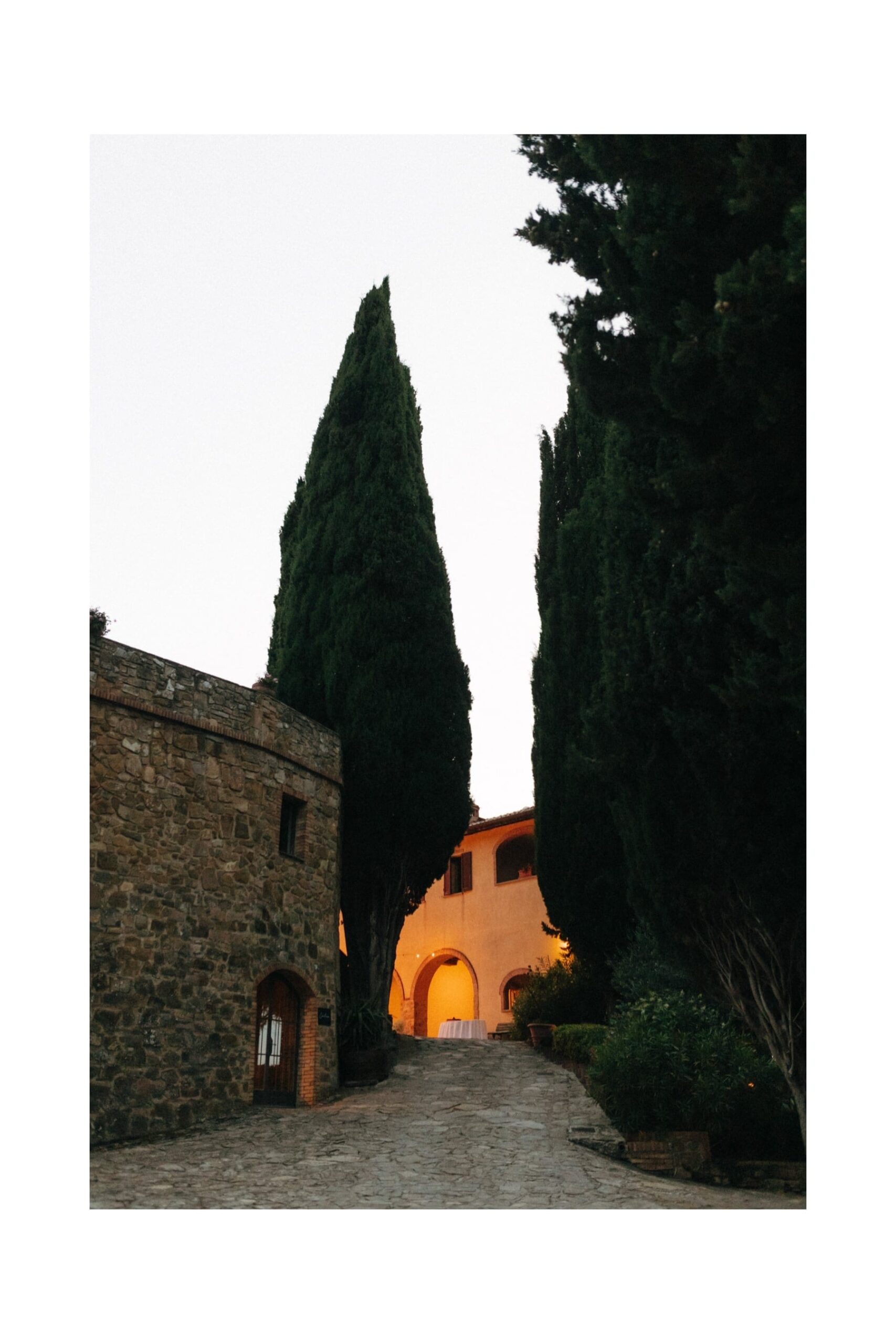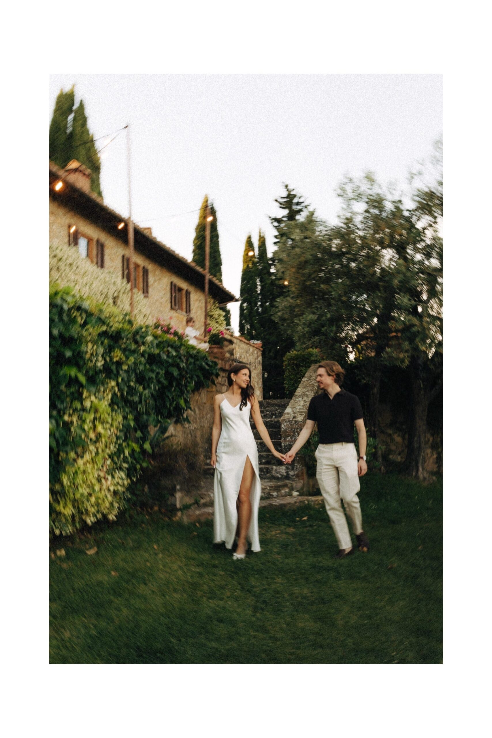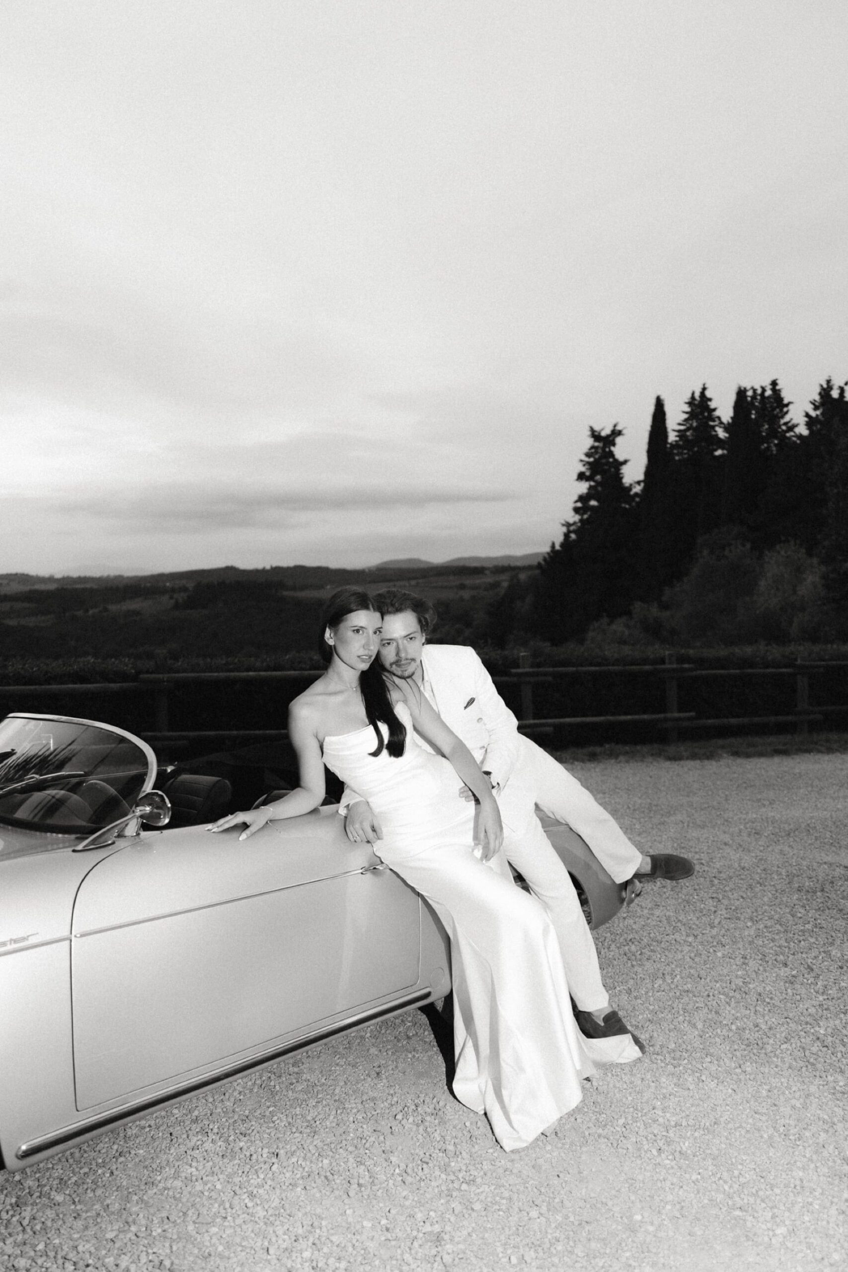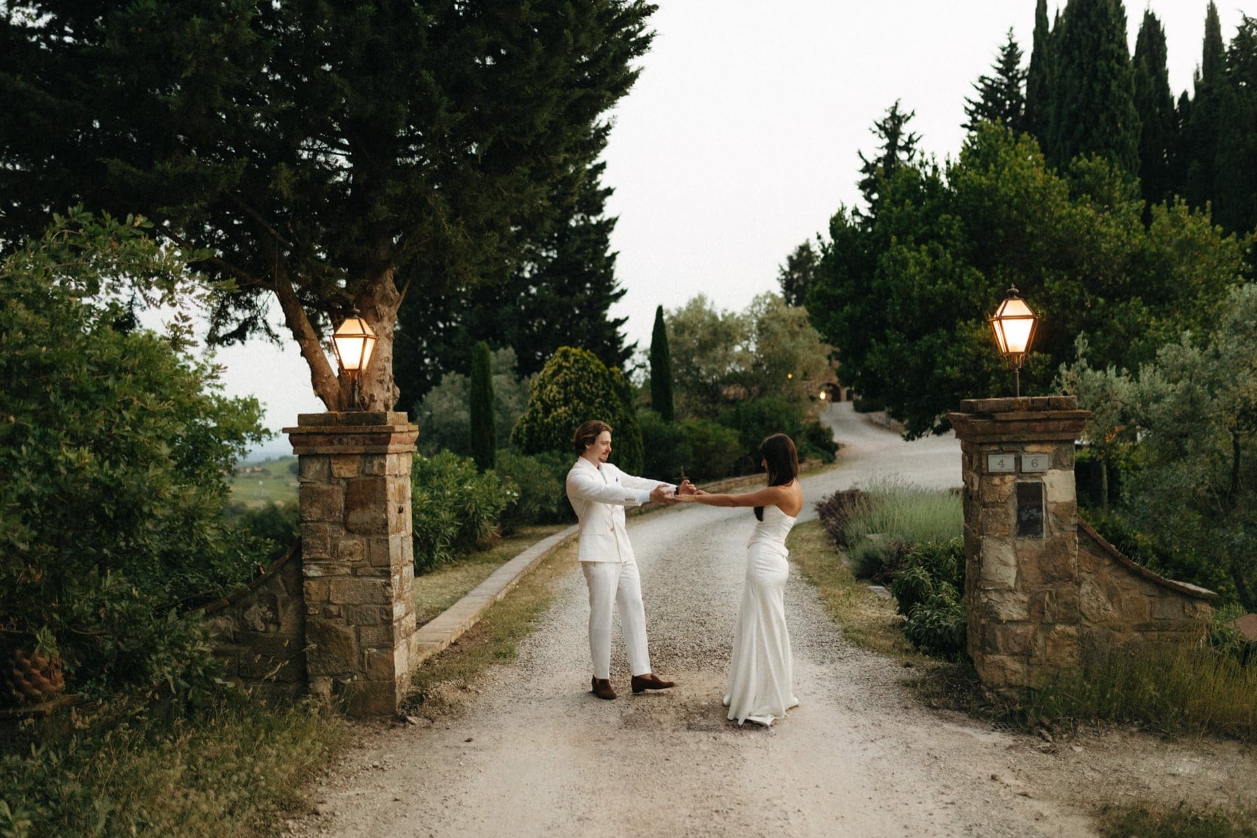 Sesja ślubna w Toskanii podczas dnia ślubu to jedno z najlepszych rozwiązań dla par, które chcą mieć piękne zdjęcia bez organizowania osobnego wyjazdu. W takich miejscach jak Quercia al Poggio jest pełno pięknej przestrzeni do wykorzystania, wzgórza Chianti, cyprysy i kamienna architektura. Tym razem wykorzystaliśmy krótki moment przejazdu z kościoła do agroturystyki na krótką sesję, a drugą część wykonaliśmy już po zachodzie słońca. Sesja ślubna w Toskanii to przede wszystkim światło, atmosfera i autentyczność – dokładnie to, co sprawia, że ślub we Włoszech jest tak wyjątkowy.