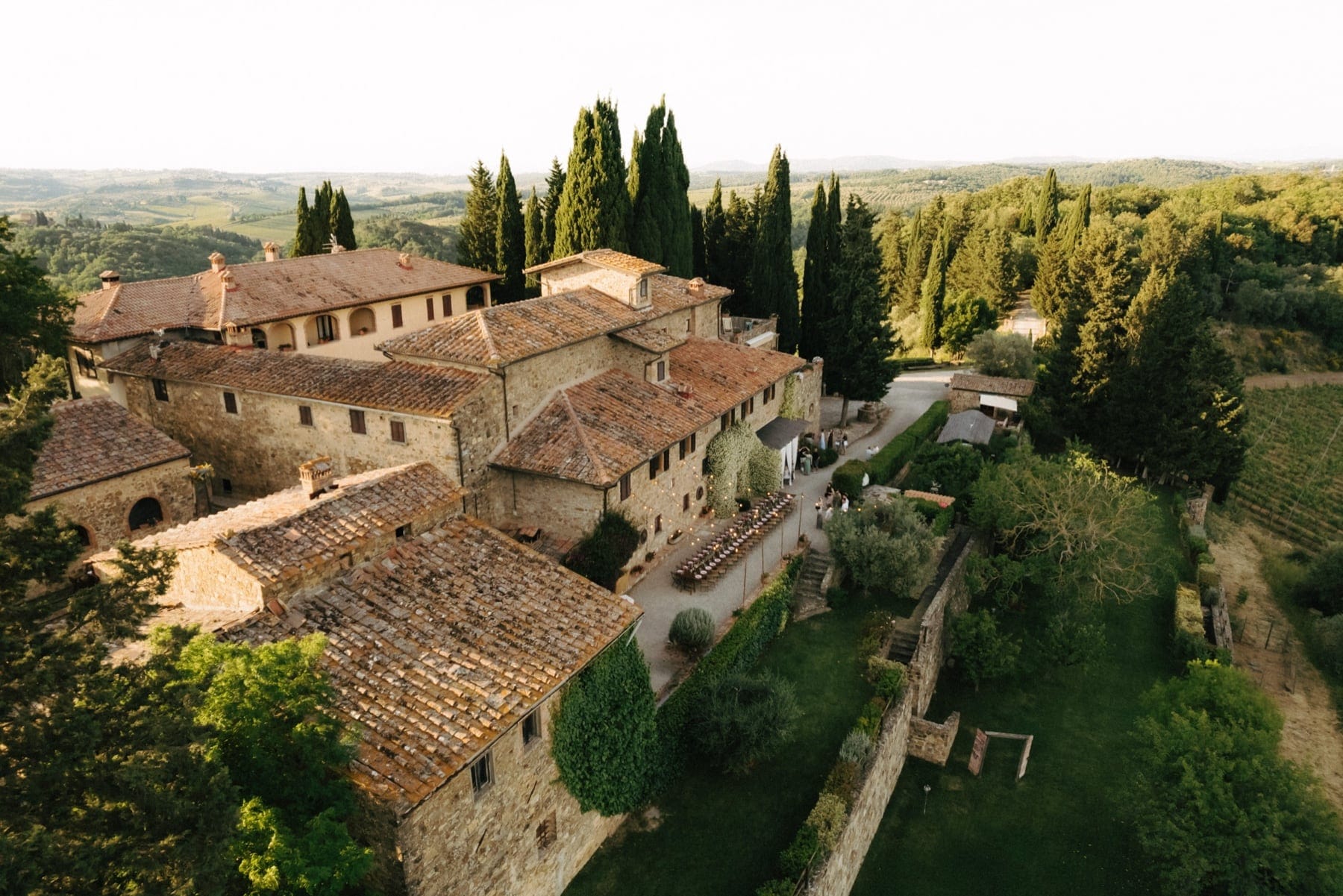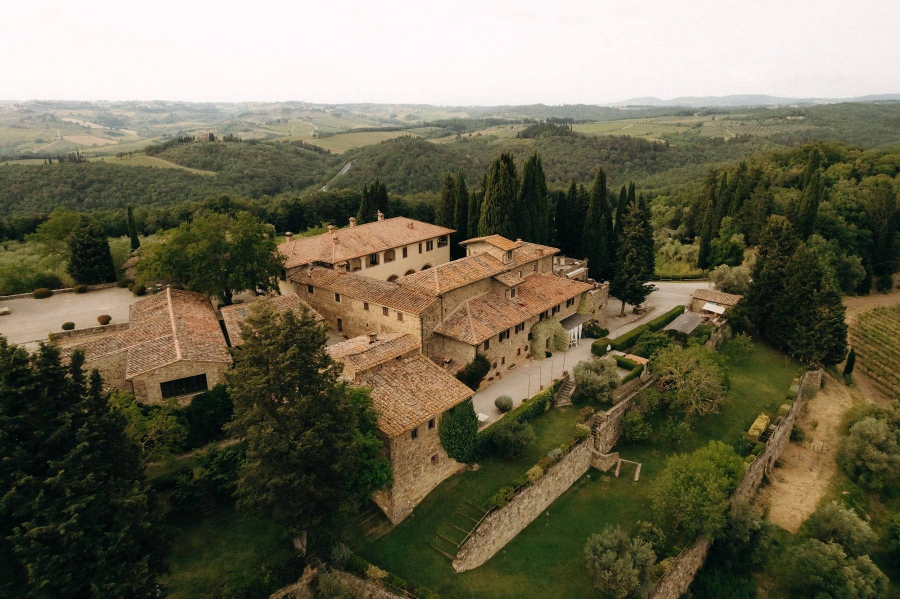 Quercia al Poggio to miejsce, które idealnie wpisuje się w hasło ślub we Włoszech i wesele w Toskanii. Położone w sercu regionu Chianti, odseparowane od reszty świata naturą. To historyczna posiadłość związana z dawnym klasztorem zakonników z Vallombrosy, która dziś zachwyca spokojem, autentycznością i pięknem natury. Kamienne budynki, otaczające wzgórza i wszechobecna cisza sprawiają, że jest to idealne miejsce na organizację ślubu w Toskanii.