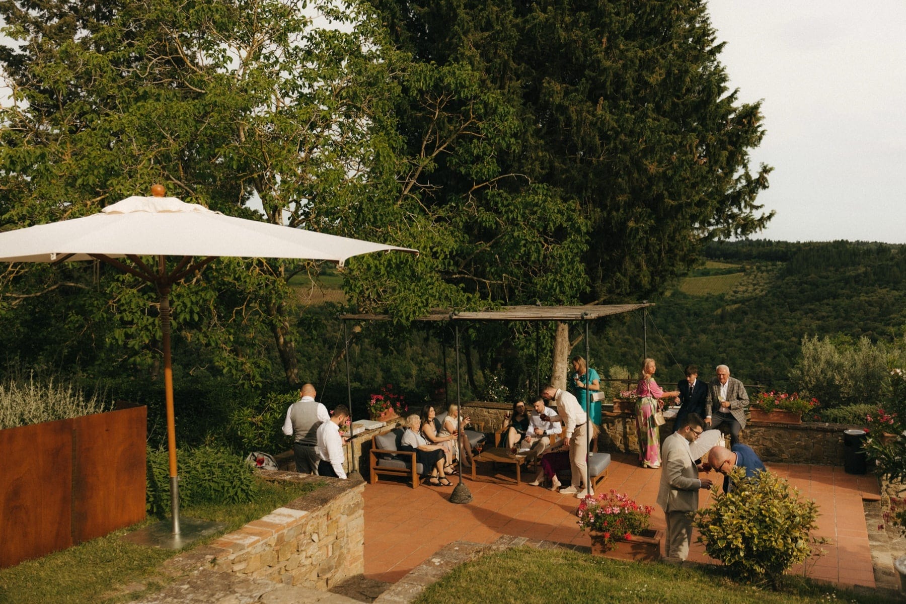Wesele w Toskanii bardzo często zaczyna się dzień wcześniej – i dokładnie tak było tutaj. Na terenie Quercia al Poggio odbyło się pizza party, które wprowadziło wszystkich w prawdziwy włoski klimat. Długie stoły, zachodzące słońce, rozmowy i najlepsza pizza dolce, jaką kiedykolwiek jedliśmy – prawdziwe dolce far niente z widokiem na Toskańskie pagurki.